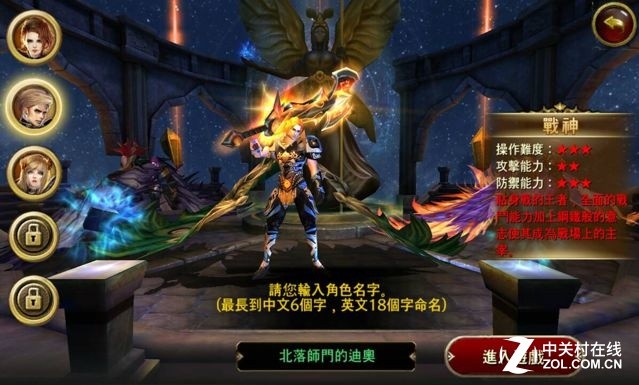 创角时玩家必须从「战士」、「刺客」、「法师」三个职业当中选择一个,三大职业的战斗风格截然不同。