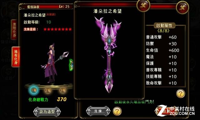 而翅膀也和化身一样,不单单只有炫丽外表,更有实质的能力加成,玩家每10等就能够开启一种专精属性,提升角色能力。