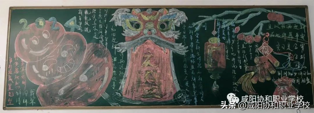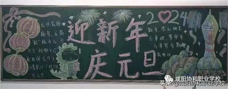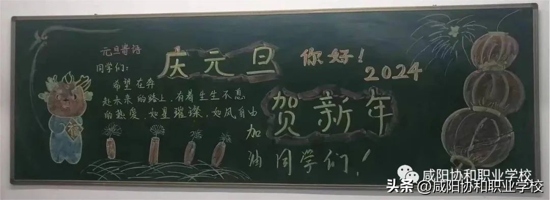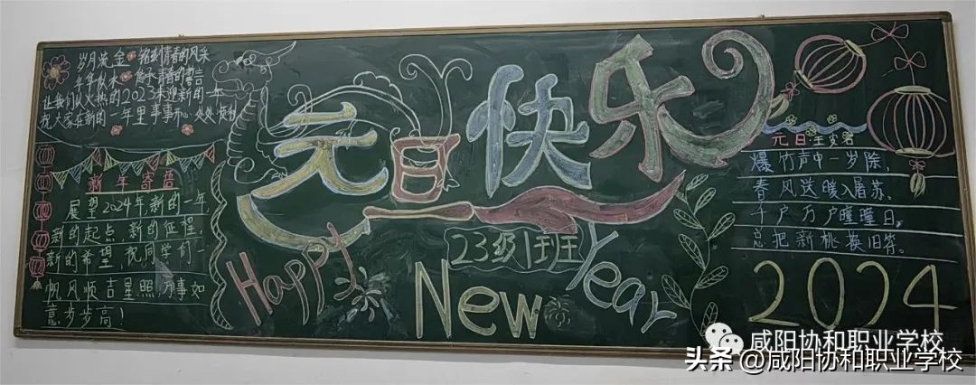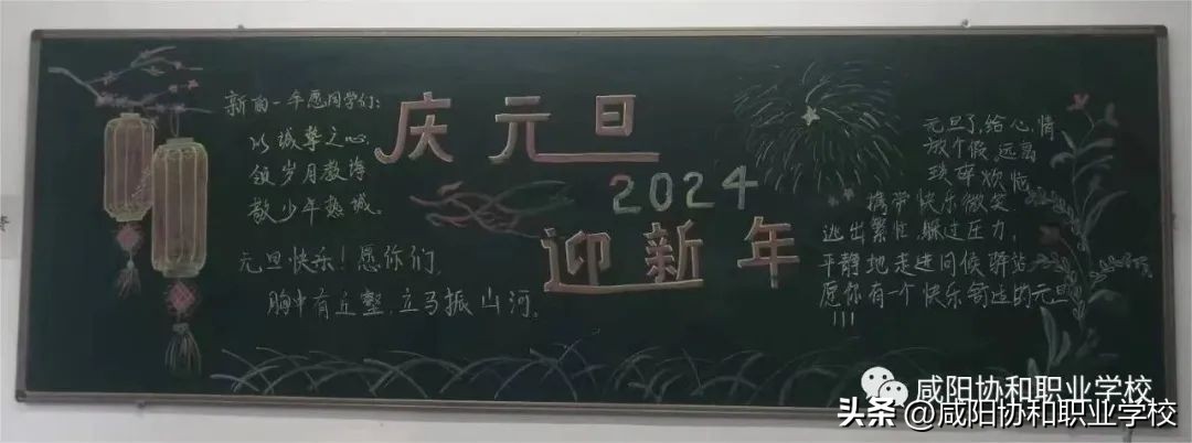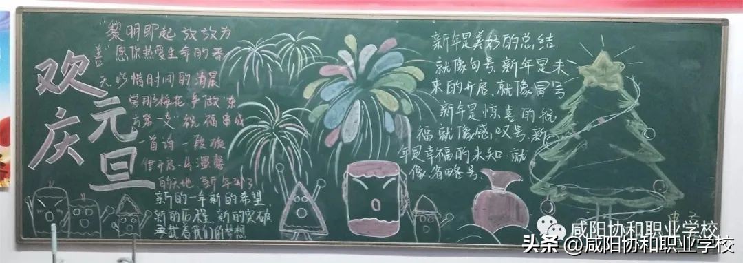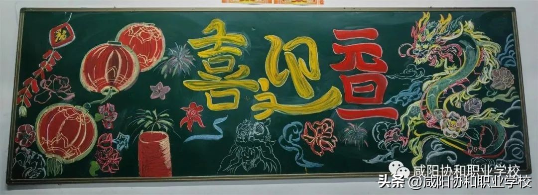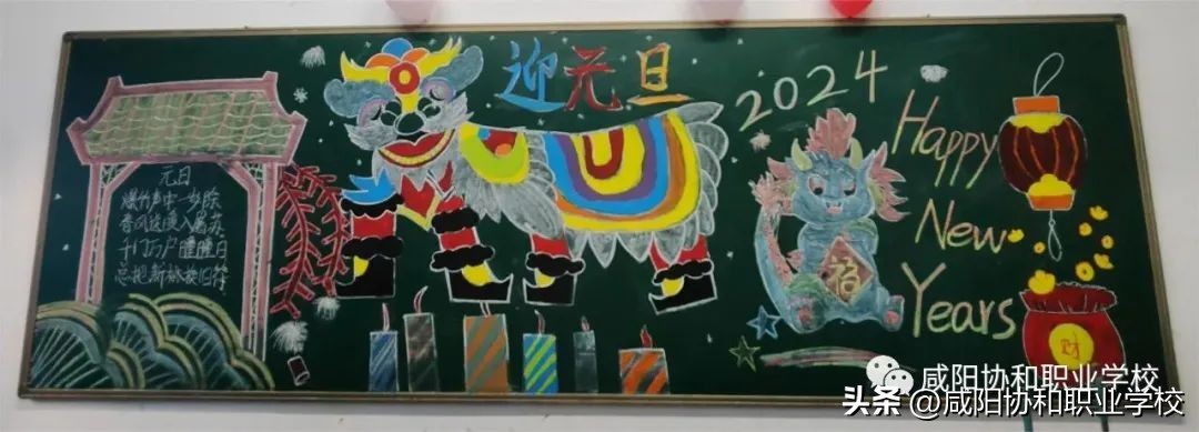 妙笔生花绘祝福,异彩纷呈贺新年—咸阳协和职业学校迎新年黑板报