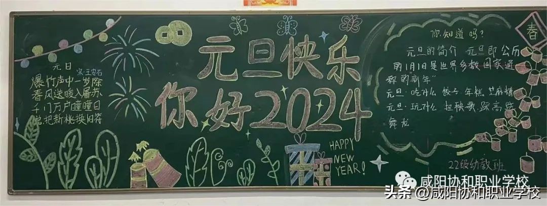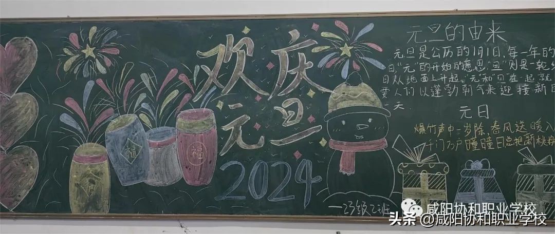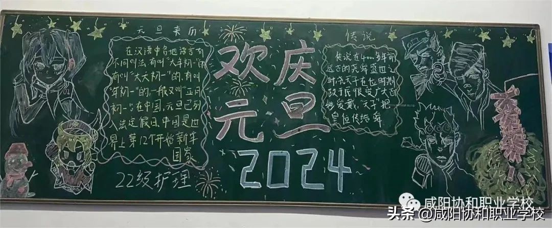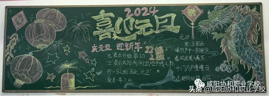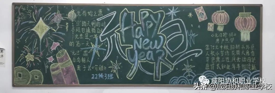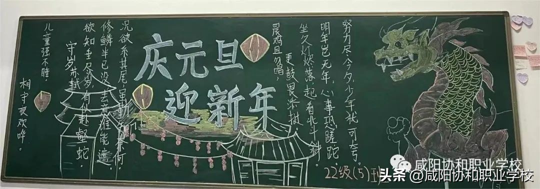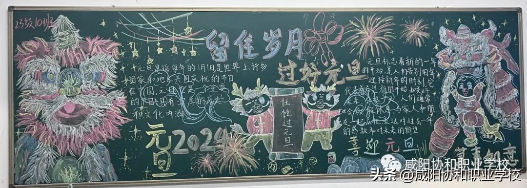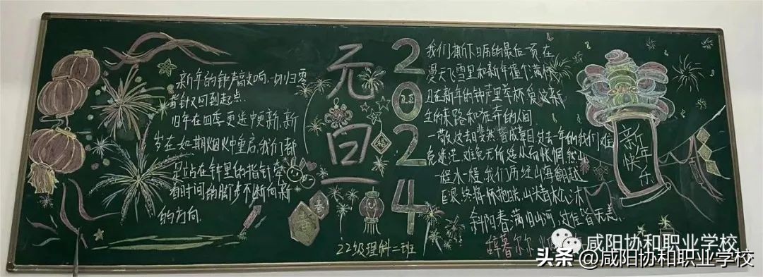妙笔生花绘祝福,异彩纷呈贺新年—咸阳协和职业学校迎新年黑板报
