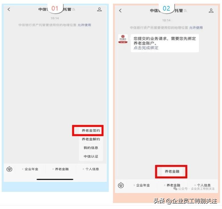 企业年金农业银行查询方法,首先关注“企业员工特别关注”服务平台,获取查询密码,然后通过手机登录“中信银行资产托管“公众号进行自助查询。
