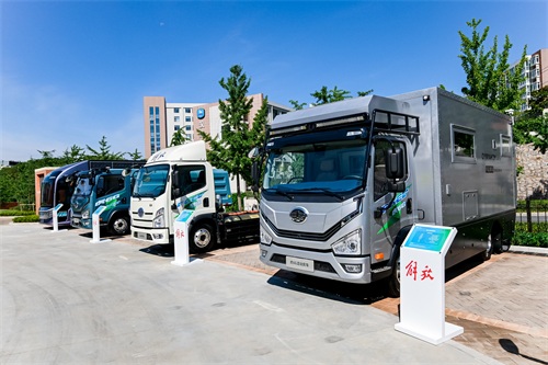 解放蓝途“星熠”液氢燃电牵引车则针对干线运输物流市场打造,具备续航里程长、低氢耗等优势。这些产品不仅在技术上处于行业领先地位,还具备卓越的市场定位和性能指标。