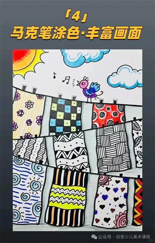 精选6款儿童线描课例,简单又出效果!一起感受线与色的碰撞