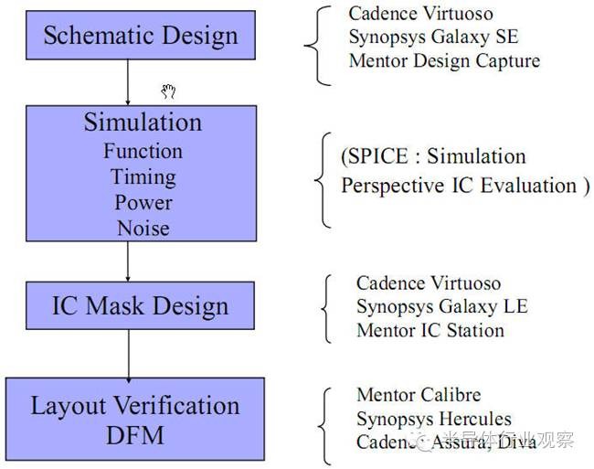 这个可以理解成全定制的设计流程,一般用于设计模拟电路和数模混合电路。