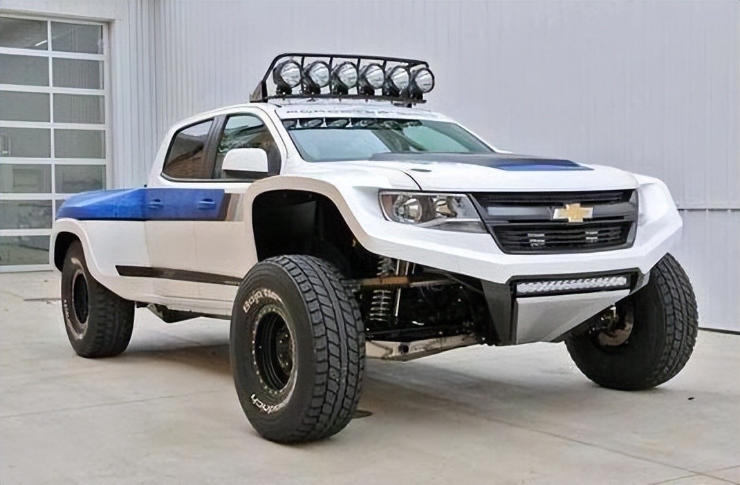 再来看看这台科罗拉多,整体风格很独特,有点赛车的feel~它除了车厢和部分货箱部分保持了原装,其它几乎所有结构和配件都是针对性定做的,包括手工焊接和宽体包围!楼主看上去感觉一个“未来战士”!