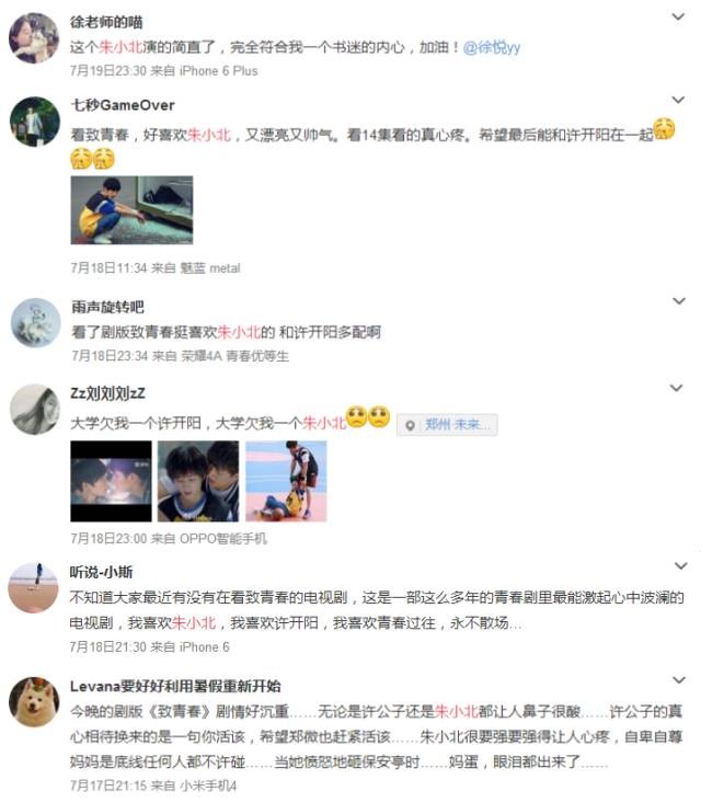 现在随着剧版《致青春》的热播,朱小北以阳光帅气的形象获得了大家的喜爱,徐悦也被粉丝亲切地称为“少女攻主”。