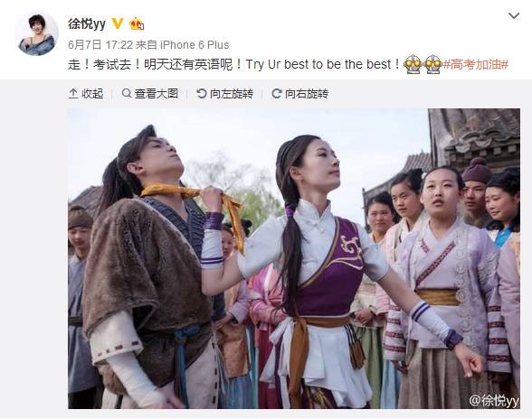 在粉丝面前,徐悦也毫不掩饰自己逗比的气质,给要参加高考的粉丝加油打气也是如此酷炫~