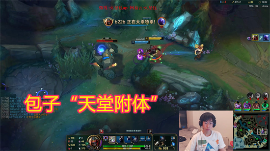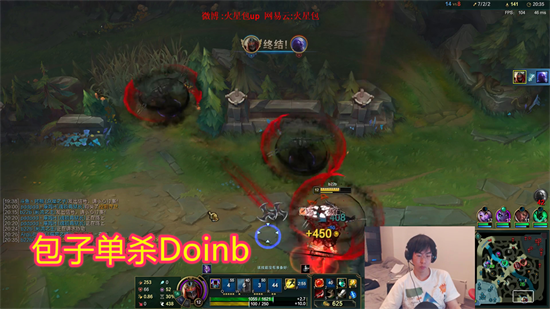 游戏来到20分钟,包子在下路逮住了正在带线的Doinb,一套行云流水的操作便是直接将其单杀,包子这局游戏中的状态真是太好了!