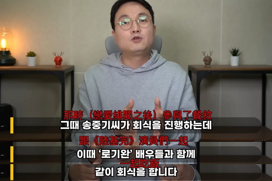 ▲▼李镇浩的原话是,宋仲基在2022年12月传出绯闻之后,参加餐叙告知周遭演员「交往3年」。 (图/翻摄自李镇浩YouTube/翻译ETtoday星光云)