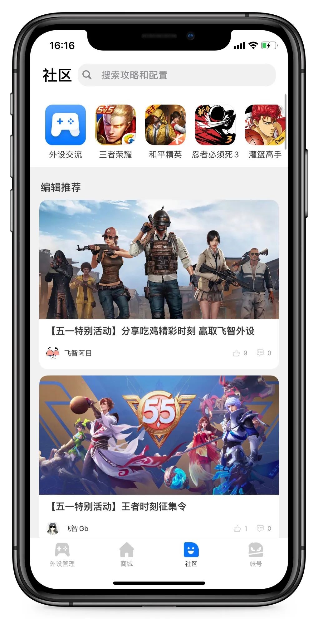 适逢五一长假,社区内还有各类话题活动等你参加,分享自己王者吃鸡的游戏精彩时刻,即有机会赢取任意一件飞智外设!(详情可查看飞智社区置顶活动贴)
