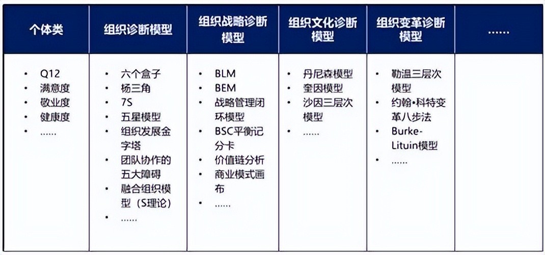 在美国 70-80 年代系统论浪潮盛行时,组织学者,将组织看成一个完整的、复杂的、动态的系统,包含了组织的不同方面,各个组织系统包含的主要部分有些雷同,但不同的系统模型,又特别关注了不同的部分。有的系统特别关注战略,有的系统特别关注组织结构,有的系统特别关注组织使命和方向(文化),这些系统组织学家也都不能达成一致的结论。