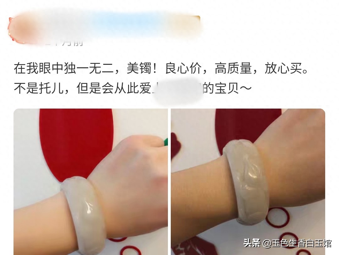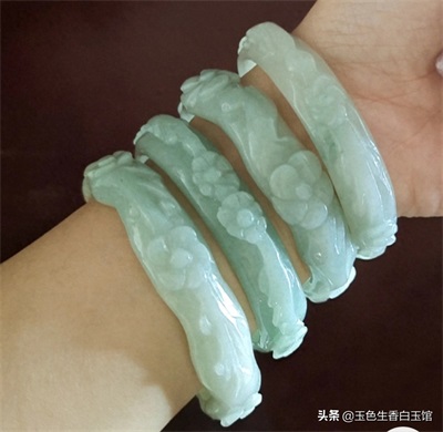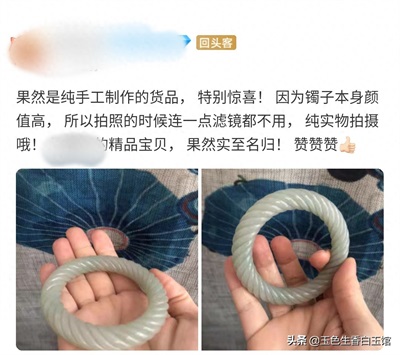 雕花镯子也是有的。虽然工艺看上去也略显粗糙。对于很多爱玉又不懂玉的人来说,还是有杀伤力的。