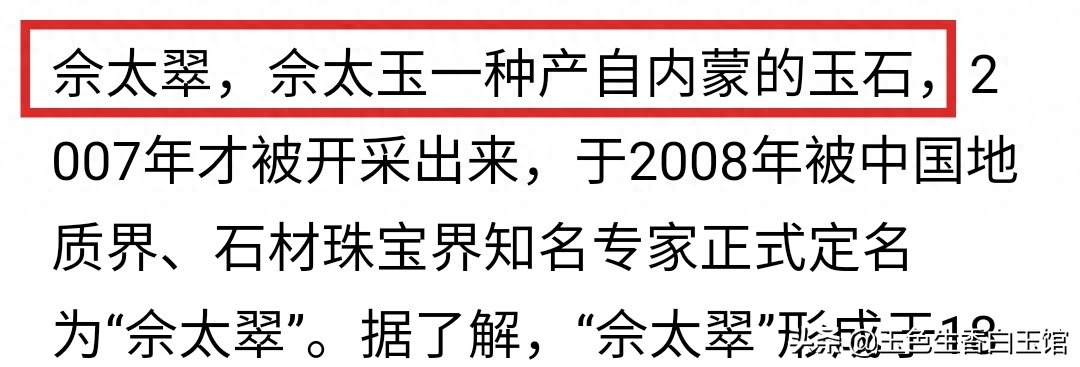佘太翠。这个名字也并不是一成不变的。最初刚刚被开采的时候,碰瓷“翡翠”。所以取了佘太翠这个名字。