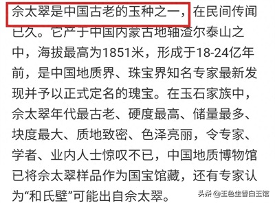 对这个新兴玉种,商家也不乏炒作的。吹捧是古老的中国玉种,是国宝宝玉,甚至还是和氏璧的材质之一。真的是各种尬吹。