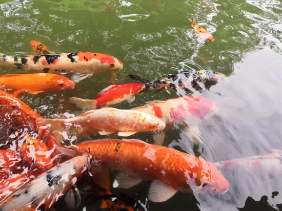 特色喂锦鲤,有卖鱼饲料。可以体验喂鱼活动,不过这些鱼抢饲料太凶猛了。下面几张图随意感受下。估计是工作人员好久都没喂鱼了。