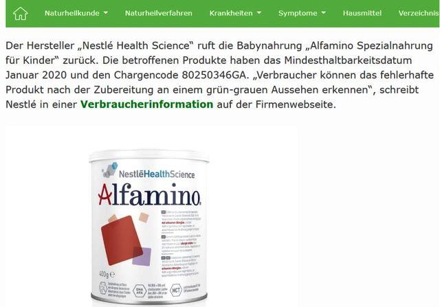 12月6日,雀巢公司德国官网发文称,雀巢日前宣布在德国召回一批恩敏舒氨基酸婴儿配方奶粉,原因是其部分产品的矿物质含量过高,可能引起儿童不适,如有影响必须立刻就医。德国媒体随后普遍报道了这一事件,提醒家长注意安全。