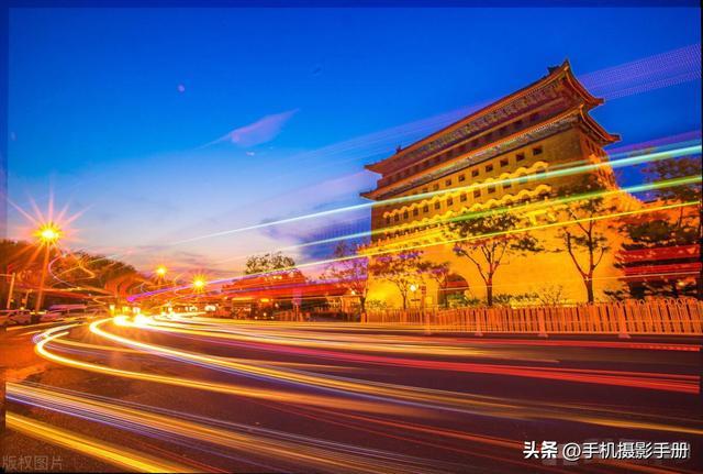 背景最好涵盖城市的标志性建筑,比如上图中的北京前门。最好等到双层大巴经过的时候拍摄,这样拍出的车轨会更丰富。还有一点就是必须用三脚架,保持相机的绝对稳定才能拍出这种长曝光效果。