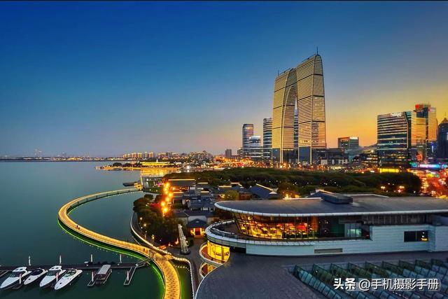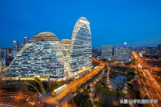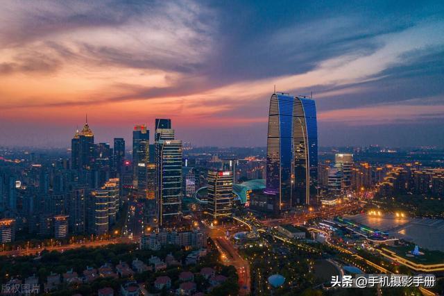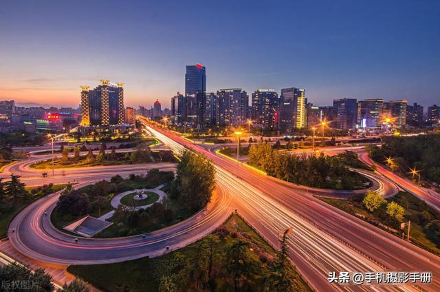 最佳的夜景拍摄时间是太阳下山后,城市中的路灯、车灯、景观灯亮起来,但天空没有完全黑透的那段时间。