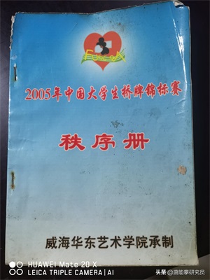 最后附一张唐师收藏了15年的一份秩序册,唐师参加并夺冠的该桥牌比赛2005年在威海举行。