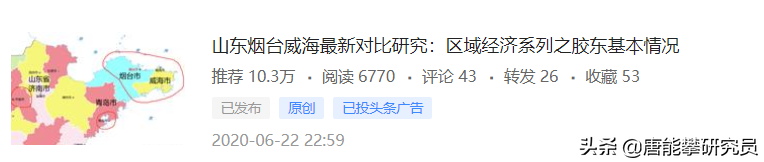 6月22日,唐师发布《烟台威海对比之胶东基本情况》,从区位区划(一、二)、人与地(三、四)方面进行了对比,大家提了很多意见建议。今天继续第二篇。