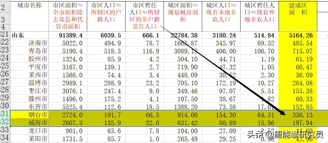 烟台在2025年底建成区面积达到336平方公里,为威海仅为198平方公里。在2025年由于新设区,烟台的建成区面积将变化更大。
