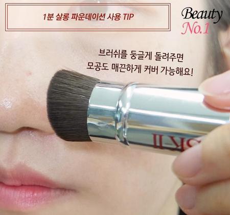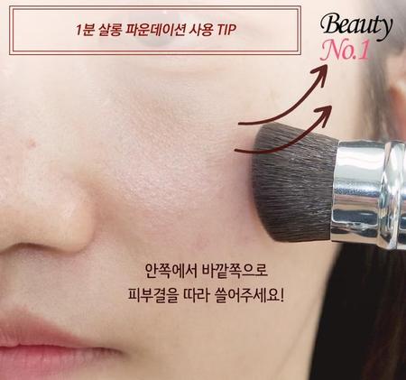 TIP2:然后在由宽至窄画Z字形方式轻刷,这样就不会留下粉底刷痕迹啦。