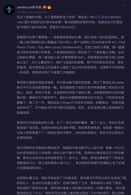 林书豪长文揭秘!时隔8年讲述“林疯狂”起源细节 再次感动全世界