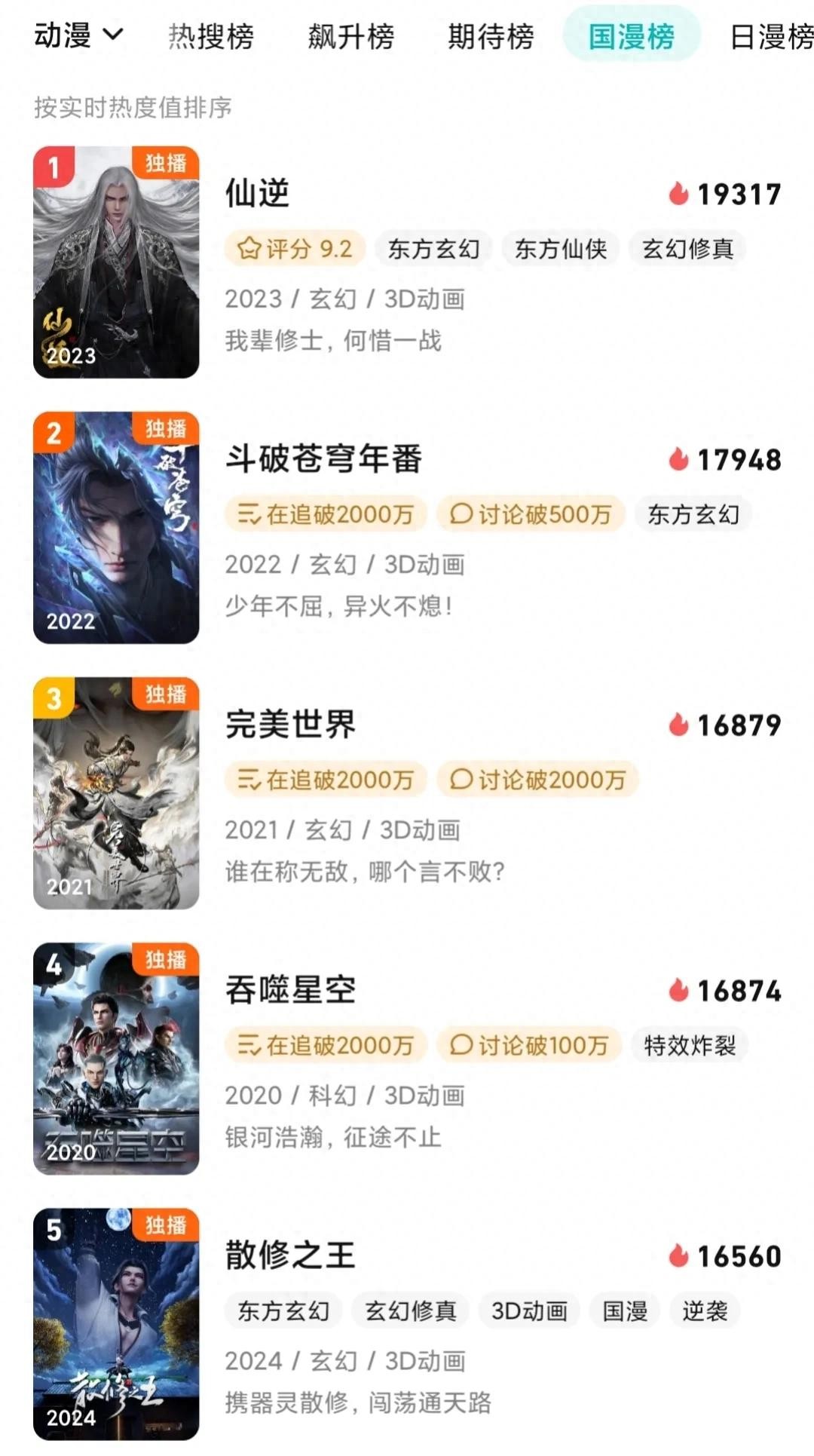 国漫热播榜1-5
