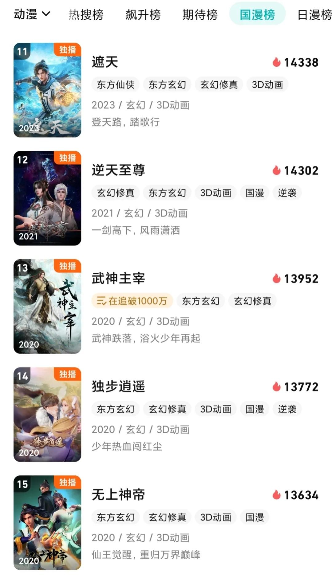国漫热播榜11-15