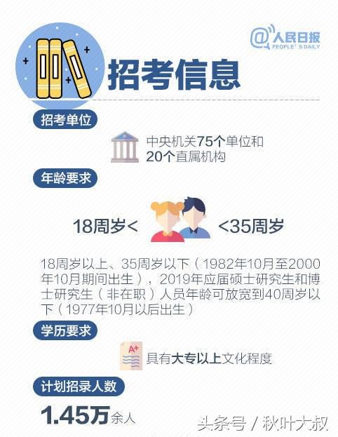 2、中央机关75个单位和20个直属机构,计划招录1.45万余人。