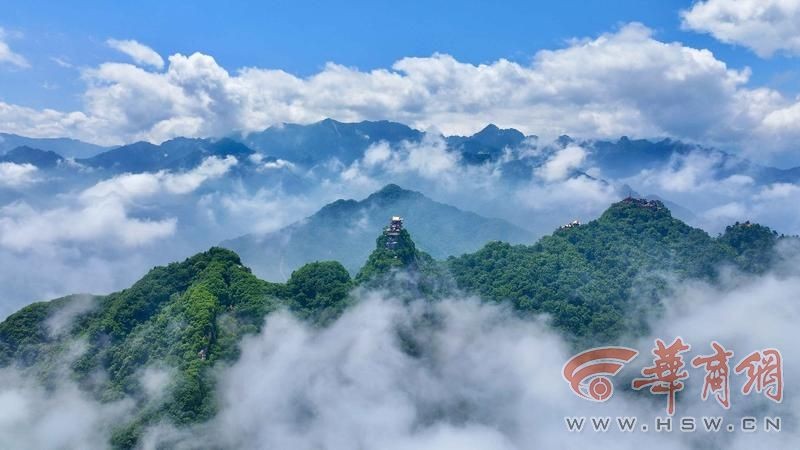 9月2日,西安市终南山南五台带着壮阔云海与众人见面,恭贺新一年开学季的到来。云顶天宫灵应台向远处看,只见云雾不断从山间喷涌而出,时快时慢,一丝丝、一团团、随风飞舞千姿百态。山峦绵延,起伏跌宕,伫立于天地间,如巨龙舒展身姿,气魄壮丽。山与云相依,绘成一幅壮阔的千里江山图。有诗云,好风凭借力,送我上青云,愿万千学子起航扬帆,于高山之巅见云海奔涌,觉长风浩荡。