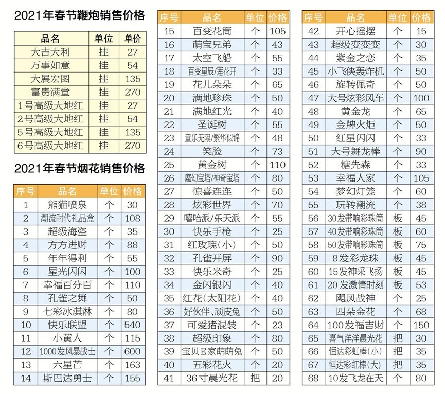 2021年春节期间乌鲁木齐烟花爆竹销售价格正式公布