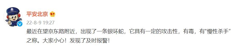 北京望京东路附近出现一条剧毒银环蛇,警方:发现及时报警