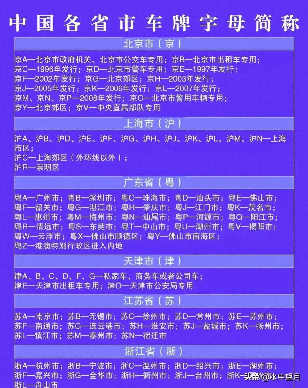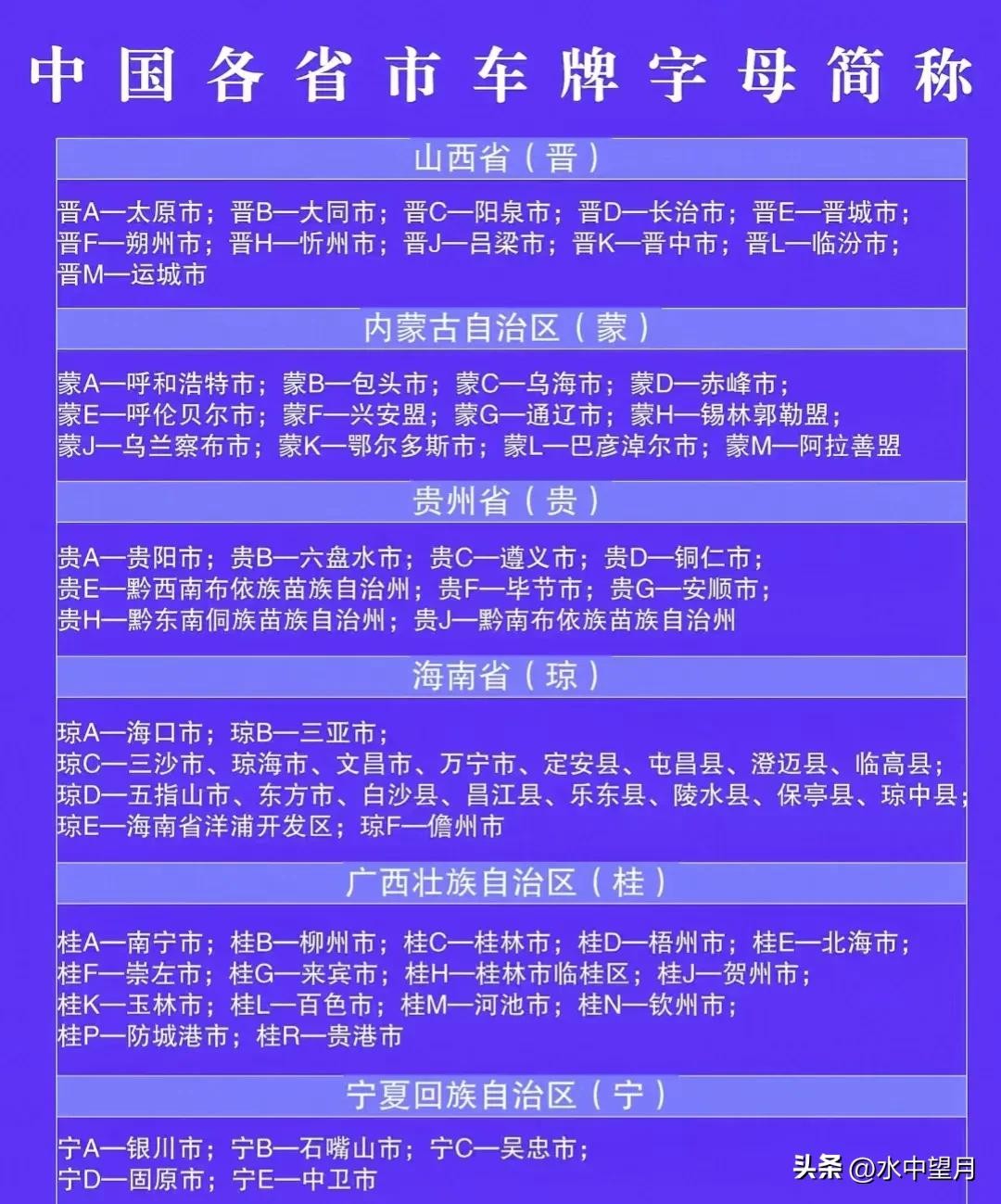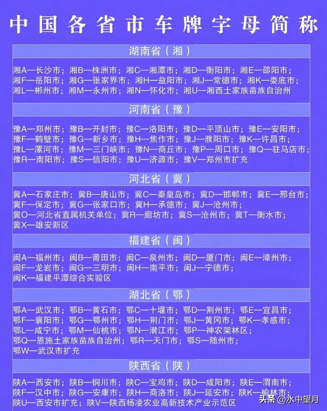 看看中国各省市车牌字母简称,你所在地城市是什么?