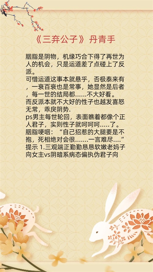 这三世可谓十分折磨,男主偏执病态,每一世女主都因为各种各样的原因主动或被动的放弃了男主,后来男主变得越来越偏执,情节非常虐,主要是男女主三观不合,女主想让男主向善,但男主是个彻彻底底的反派,心狠手辣。