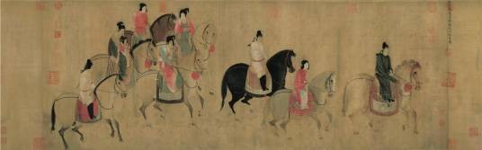 虢国夫人游春图张萱人物画”的典型作品之一。也是我国工笔人物画的杰出代表作之一。