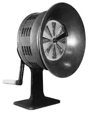 1942年,日军上海陆海军防空司令部首次规定利用警笛与电铃作空袭警报之用,这是上海最早使用的防空警报器。按能量转换方式,警报器可以分为电动、电声、气动和手摇警报器四类。