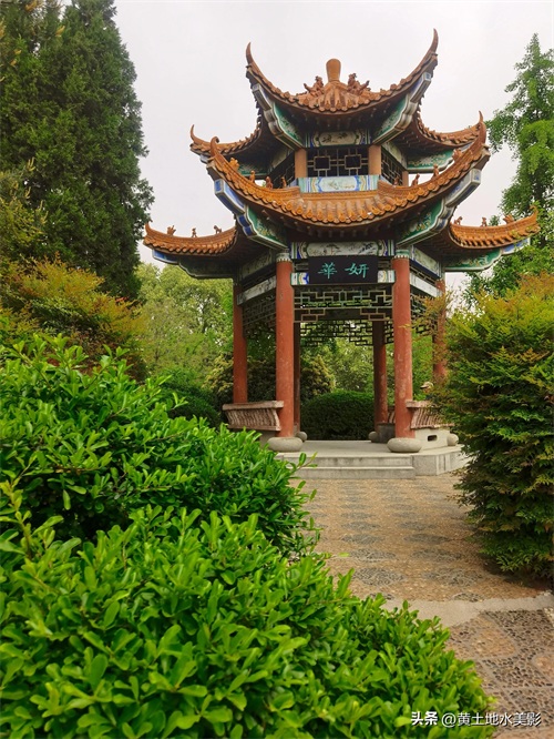位于郑州人民公园西门口不远处的古色古香的华妍亭风光。