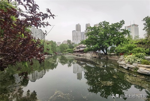 在郑州人民公园内,湖光山色的水域之美尽显其中。