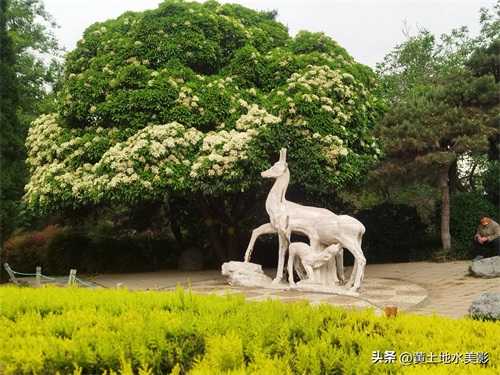 位于郑州人民公园西门不远处的小鹿跪乳雕塑。