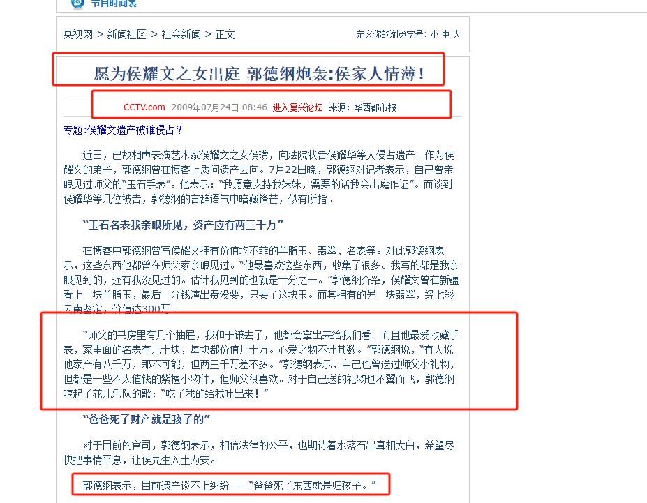 愿为侯耀文之女出庭 郭德纲炮轰:侯家人情薄!CCTV.com 2009年07月24日 08:46 华西都市报