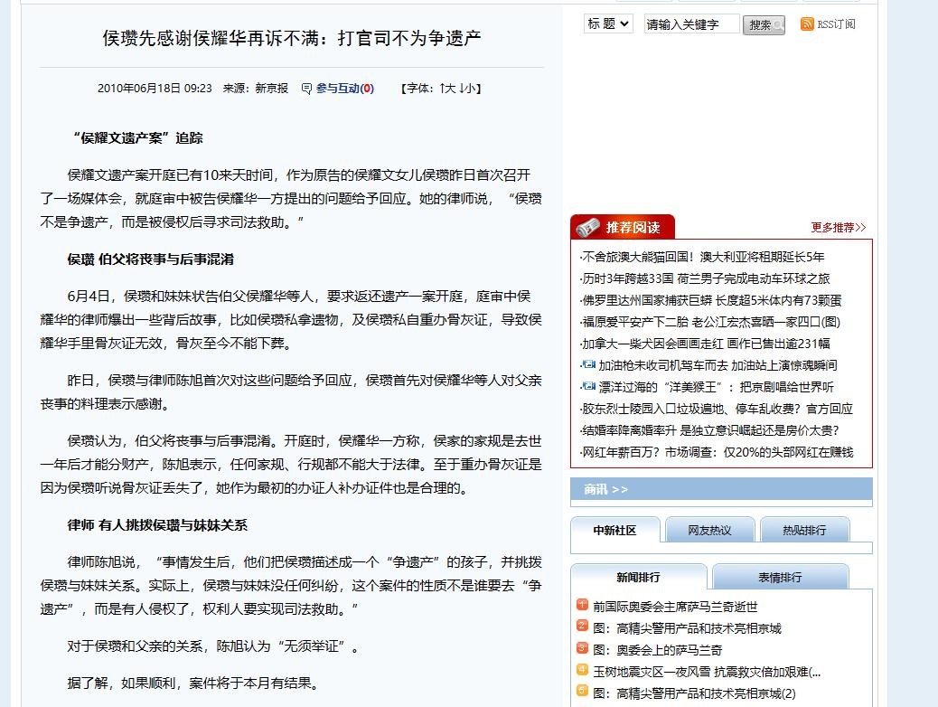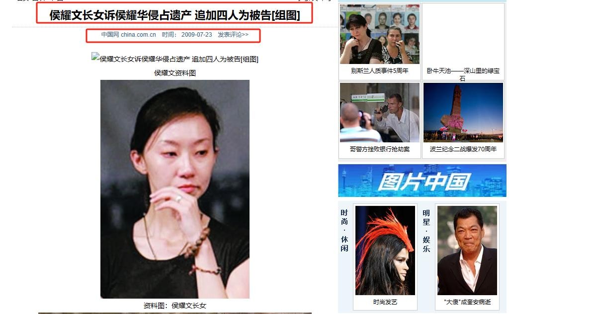 侯耀文长女诉侯耀华侵占遗产 追加四人为被告[组图]中国网 china.com.cn 时间: 2009-07-23