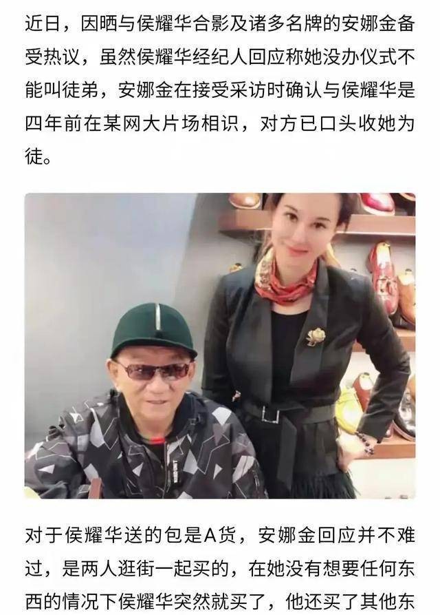 早在2020年,侯耀华就曾经澄清过两人之间的关系,说绝非师徒,而是点头之交,至于那款包更不是限量款,而是A货,不过这一说法得到了安娜金的反驳。