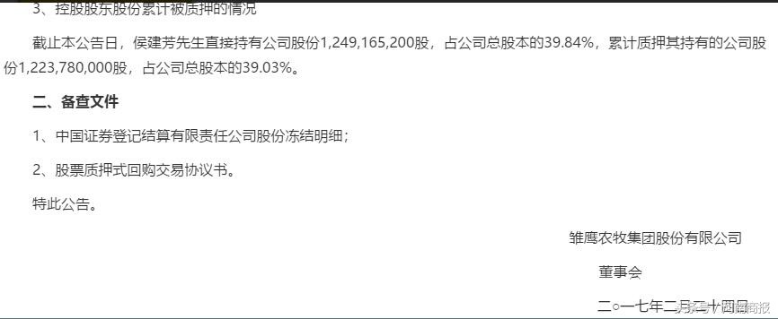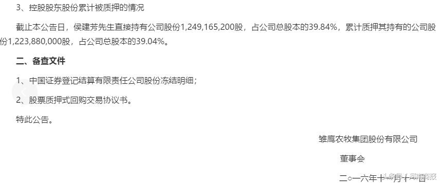 而在这个节点质押公司全部的股权,是因为当时一个对雏鹰农牧来说非常重要的时刻。