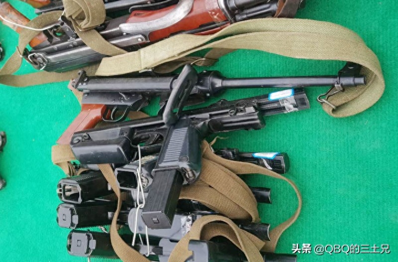 待销毁的几支82式,上面是一支85式冲锋枪及56-1冲锋枪。