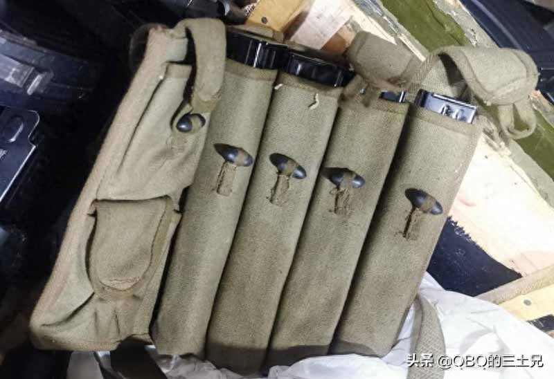 82式冲锋枪所配的帆布弹匣袋,形式比较简单。