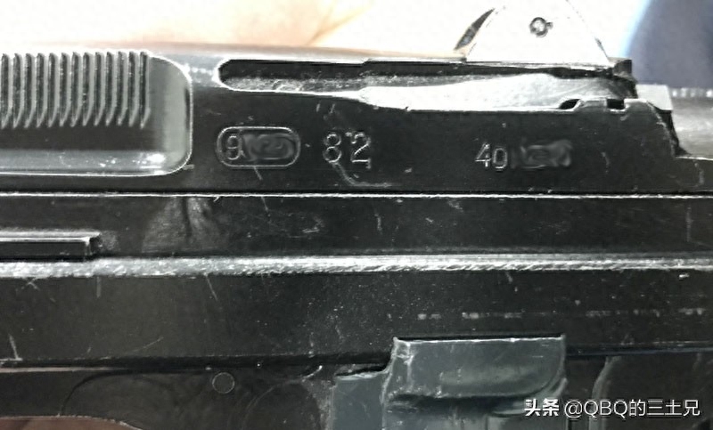 82式机匣右侧的标识,从左至右分别是厂号、型号和枪号。