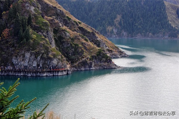 而游览天池,可以选择沿湖遛弯,或乘坐游船各索道上山,在山顶可近距离看博格达雪山,以及远眺天池,好似一副美丽的画卷。