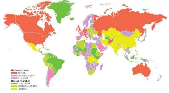 点评:值得一提的是非洲某些国家和外蒙是移民接受国的原因是非洲难民迁移频繁,比如A国难民从A国逃到B国,结果刚逃过去没多久那里又发生天灾人祸,又和B国难民一起逃去C国……以此类推。至于外蒙古,则是由于时数年来接受来自哈萨克、阿富汗等国逃难的难民较多。