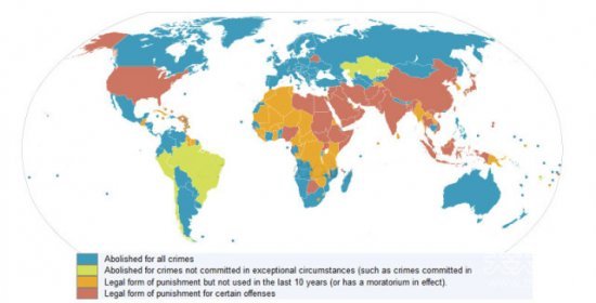 绿色:已废除一些极端情况下犯罪的死刑(如战争)